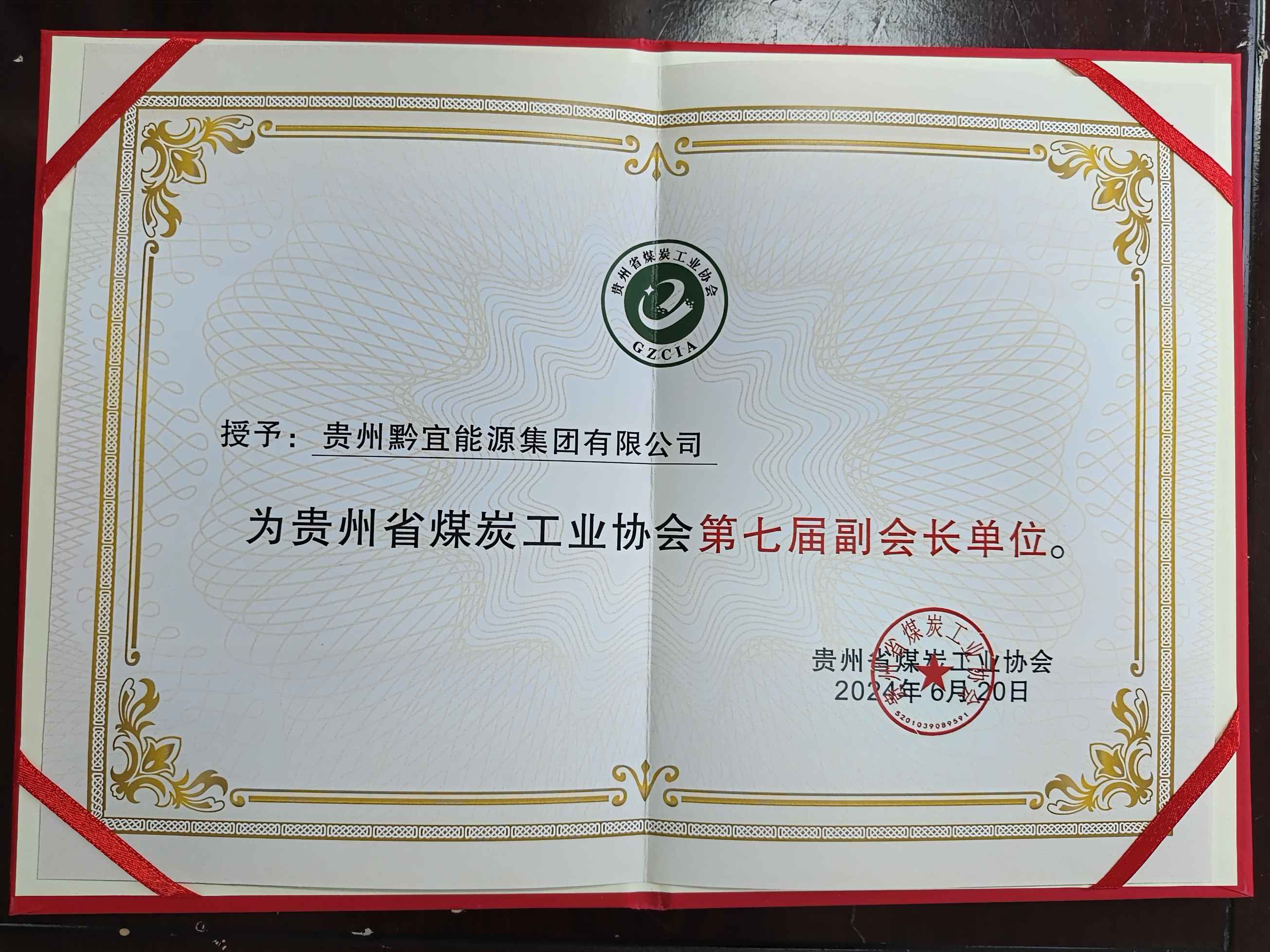 榮獲貴州省煤炭工業(yè)協(xié)會第七屆副會長單位